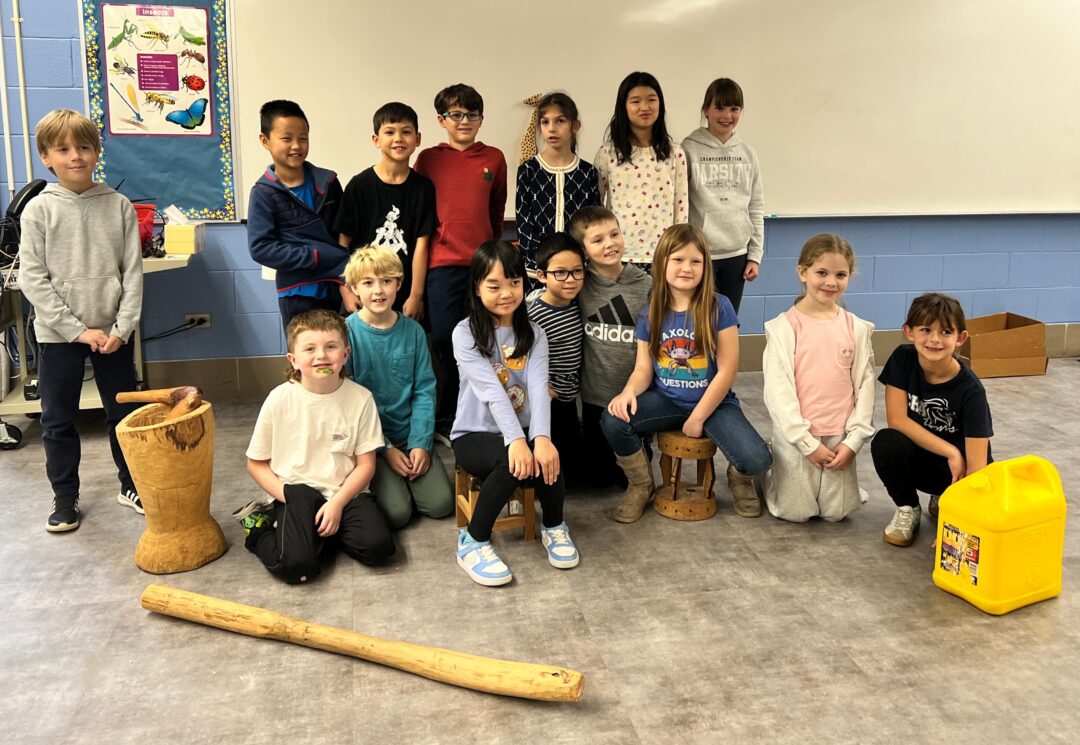 RISE visited Christian Heritage Academy’s 3rd grade classes to share about RISE and our work building schools in Angola to give children access to education. Students learned about the similarities and differences between their lives and those of kids in Angola. They also had the opportunity to “experience” aspects of daily life in an Angolan village, including corn pounding, carrying water jugs, balancing a basket, and wrapping African fabric. Thanks to the teachers and students for their enthusiasm and engagement!